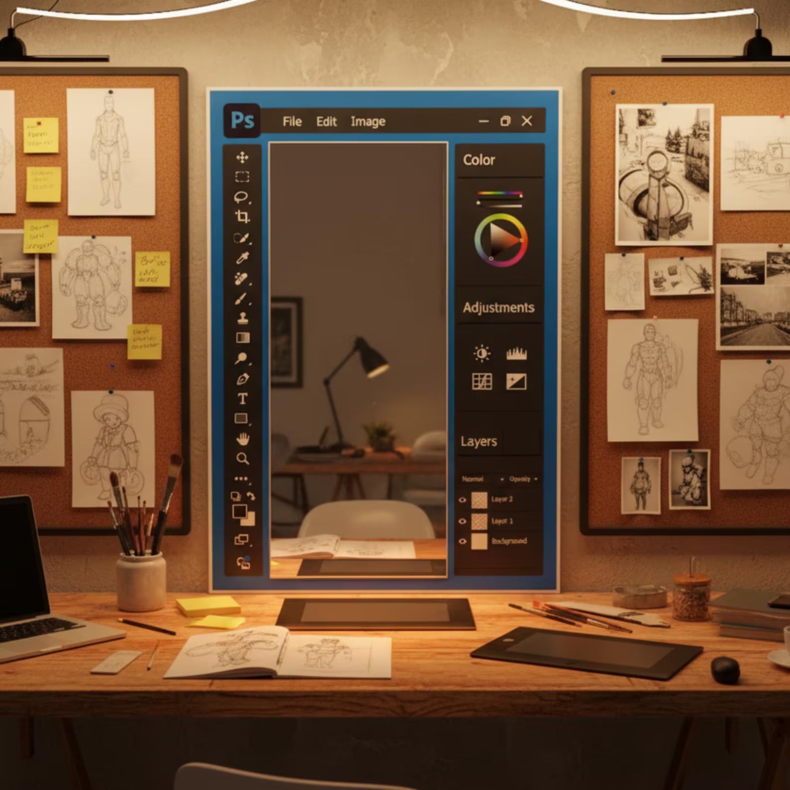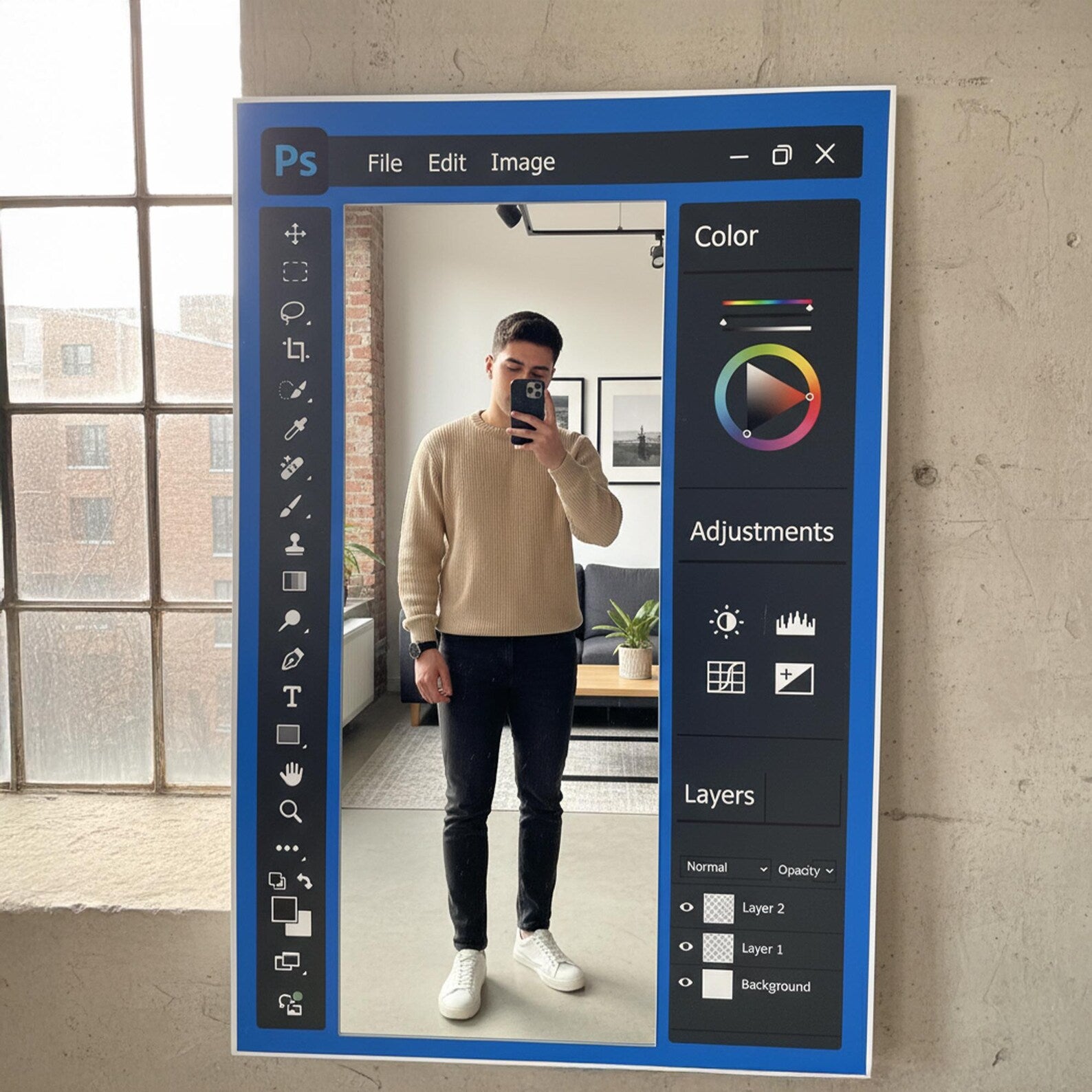Miroir mural à thème Photoshop pour designers et artistes numériques